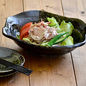 商品説明 落ち着いた深みのあるグリーンと石目が渋さを感じ、和の趣たっぷりの織部の器。 大胆で力強い雰囲気が織部の魅力。食卓にひとつあるだけで存在感抜群。風情ある和の演出に最適です。 織部の深緑はオレンジや赤の食材の色を綺麗に引き立て、いつものお料理も高級感がアップしますよ。 こちらは3?4人分の煮物やサラダの盛り付けに使える大鉢。深さがあるので、煮込み料理など汁気のあるお料理や、ちらし寿司などを盛り付けてもよさそう。 家族分や来客時の大皿料理を盛り付けて食卓の主役としてお使いください。 商品詳細 サイズ/口径28×20.2(縦横中央部分)×高さ9cm (一番高い部分) 重さ/約1275g(商品により誤差があります。) 容量/約1400cc(満水) 素材/磁器 質感/つややか 生産地/日本(美濃焼) 電子レンジ、食器洗い機使用可 オーブン(直火)不可 取り寄せ可能 ※サイズは全て外寸になります。 ※不明な点がございましたら、お気軽にお問い合わせ下さい。 ご注意 ※※アウトレット商品込みの販売です。 ※釉薬の濃淡、掛かり具合が一つ一つ異なります。 ※ピンホール(小さな穴)や鉄色部分の細かいヒビ模様、釉薬のタレなどが見られます。 ※こちらの商品は一つ一つ違いがある商品です。釉薬の色味、模様は全て異なります。和の器の表情としてお楽しみください。 ※お客様のお使いのモニター設定、お部屋の照明等により実際の商品と色味が異なって見える場合がございます。 ※画像に含まれる小物は使用イメージのために使用しています。 テーブルウェアイーストの和食器 和食器というと、瀬戸物、焼き物、陶器という総称で一般的に呼ばれています。 テーブルウェアイーストで販売中の和食器は、陶磁器の生産シェア日本一を誇る、岐阜県土岐市をはじめとする「美濃焼」が中心です。 全国各地に陶器の産地がありますが、美濃焼きはバリエーション豊かな作風が特徴で、伝統的な織部や志野を始め、今人気の波佐見焼きや北欧食器に負けないモダンなものまで製作しており、それらを卸問屋を通さず産地直送で格安で販売しています。 そして和食器は豊富なサイズ、形、模様が魅力。 そして、和食だけでなく洋食中華とお料理を問わず使える懐の深い器。 当店では、大皿・中皿・小皿・取り皿・カレー皿・グラタン皿、大鉢、中鉢、小鉢、お茶碗、湯呑、茶碗蒸し、箸、箸置き、急須、丼、蕎麦猪口など豊富なアイテムを取り揃えております。 【22cm?大鉢】 家族分のおかずの盛り付け、おもてなしの大皿料理に。サラダや、煮物、煮込み料理、パスタなど汁気のあるお料理の盛鉢として最適です。 【15?21cm中鉢】 取り鉢・向付・煮物鉢・サラダボウル・などに。二人分くらいまでのお料理の盛り付けが出来るサイズ。 また、一人分のパスタ皿やカレー皿としても使用出来る形です。 【9cm?14cmサイズの小鉢】 日常で一番活躍するサイズ。和え物やお浸し、冷奴などの副菜鉢や取り鉢として、一人分のサラダやシリアル、ヨーグルトボウルとしても。 また、子供用食器としても活用出来ます。 【8cm以下の小鉢】 小付(こづけ)と言われる小さな小鉢。タレやソースを入れたり、珍味を入れたり小さなおかずを入れたり、意外とあると重宝するサイズ。 菊型などの花型カラフルな色など季節感を出したり、食卓のアクセントに。 ブルーの染付けや粉引、織部や黒い食器など和食器の味わいを楽しんでください。 ※注文完了時に自動付与されます美濃焼の代表、「織部」。 織部の器は、安土桃山時代から岐阜県土岐市を中心に作られ始めました。 大胆で力強い雰囲気と落ち着いた深緑が魅力で、和食器の中でも大変人気があります。 こちらの「織部 石目シリーズ」は、ごつごつと重厚感のある素地に石目のような模様をつけることにより、織部の深緑の 釉薬に濃淡が出て趣たっぷり。 同じ種類のお皿でも、ひとつひとつ色の濃さなどが異なり、全く同じものがないのが特徴です。 和食器というと、どのように盛り付けたらいいかわからない・・・と言う方も、普段のお皿と同じ使い方でOK! 器の力強さで、いつものおかずも高級感ある一皿に変身! 手抜き料理の時こそ、器の力を借りてみましょう。 こちらは約30cmの大鉢。かなり重量感があり、迫力満点。 サラダや、煮込み料理、ちらし寿司など大皿料理を盛り付けて、食卓の主役に。おもてなしで使用すると、豪華な食卓の 演出が出来そうです。 底部分は三ツ足になっており、丸みのある形でも安定して置くことが出来ます。 釉薬の溜まり方、色の濃さ、鉄色部分の大きさなど、どこをとっても違いがあります。 ひとつひとつ表情が違うのが和食器の魅力の一つ。 その違いを器の個性としてお楽しみ下さい。 「織部 石目」シリーズは全部で9種類。大皿、大鉢、小鉢、取り皿、長角皿、角小皿、6.5寸丼、4.5寸丼、正角皿と バリエーション豊富な展開。 大きな器は、存在感抜群で食卓の中心に。小鉢や取り皿は来客用におすすめです。 正角皿は、お刺身や焼